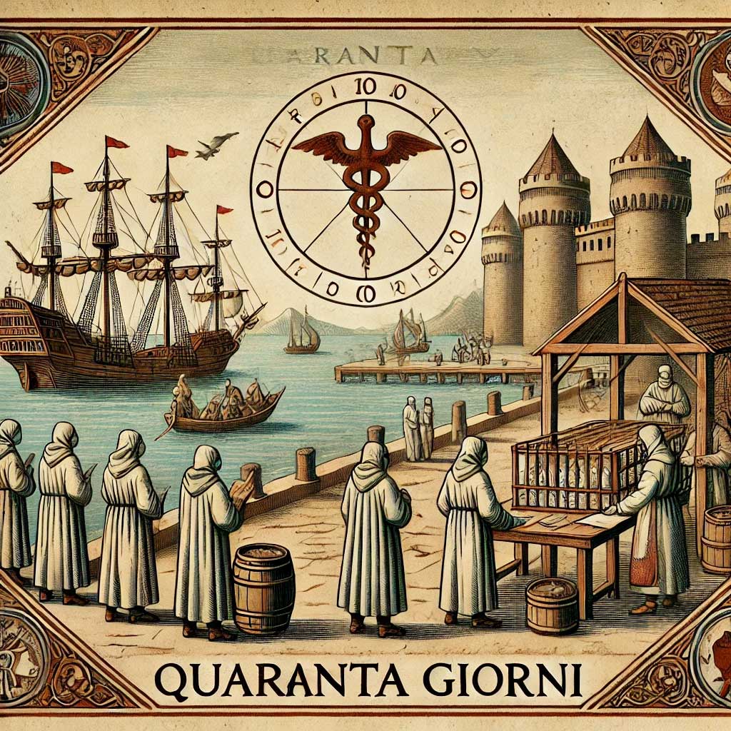 Kelime, İtalyanca “quaranta giorni” yani “kırk gün” ifadesinden türemiştir. Bu terim, 14. yüzyılda Avrupa’da veba salgınlarının yayılmasını önlemek için kullanılan bir uygulamadan gelmektedir. Venedik limanına gelen gemilerin, mürettebat ve yolcularının hastalıklı olup olmadığının anlaşılması için 40 gün boyunca açıkta bekletilmesi kararlaştırılmıştır. Bu süre, hem dini hem de pratik nedenlere dayanıyordu; İncil’de geçen birçok önemli olayda 40 sayısının tekrar etmesi, bu sürenin sembolik bir önem taşımasına yol açmıştır.
